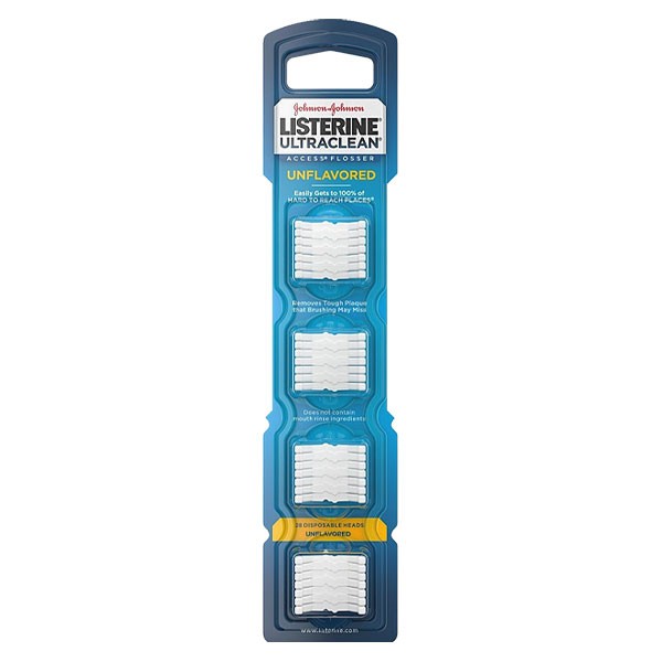 The Listerine Access Flosser Refill includes 28 unflavored flosser heads.