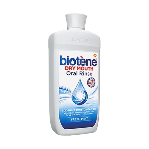 Biotene Dry Mouth Oral Rinse has a sugar-free and alcohol-free formula that is designed to soothe and moisture dry mouths for up to 4 hours. The rinse promotes a balanced pH and helps freshen breath. Biotene rinse can be used up to five times a day. - Reviews