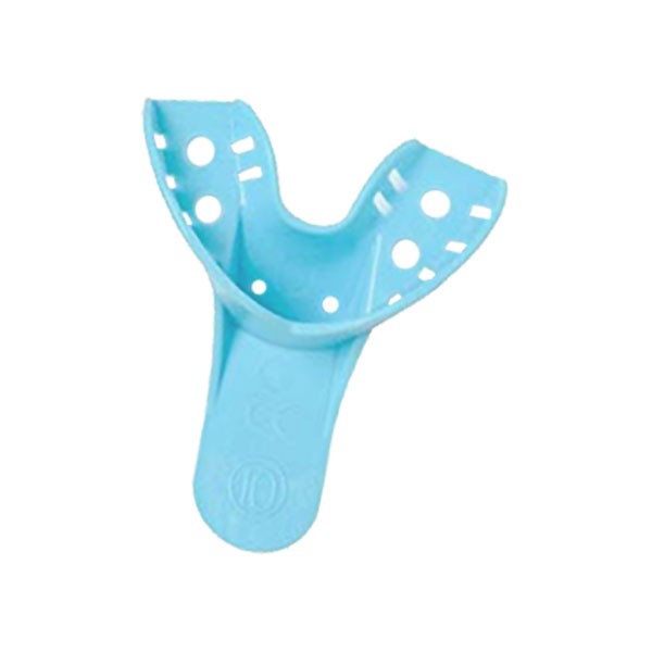 DentaMart Disposable #9 Anterior Lower Impression Trays are made from strong plastic with a perforated design to aid in creating consistently accurate tooth impressions.